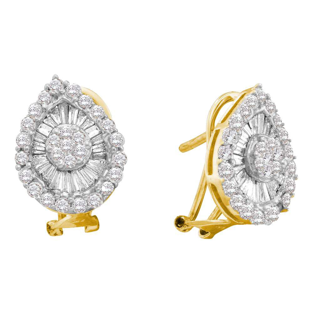 14kt Yellow Gold Womens Round Diamond Oval Cluster Earrings 1-1/4 Cttw