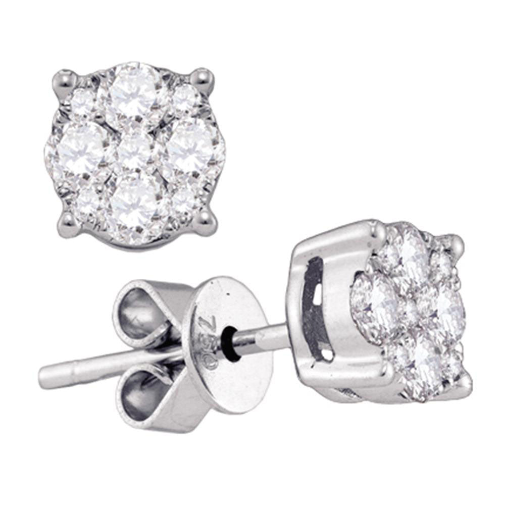 18kt White Gold Womens Round Diamond Cluster Earrings 3/4 Cttw