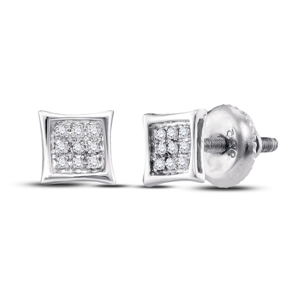 Sterling Silver Unisex Round Diamond Kite Cluster Stud Earrings 1/20 Cttw