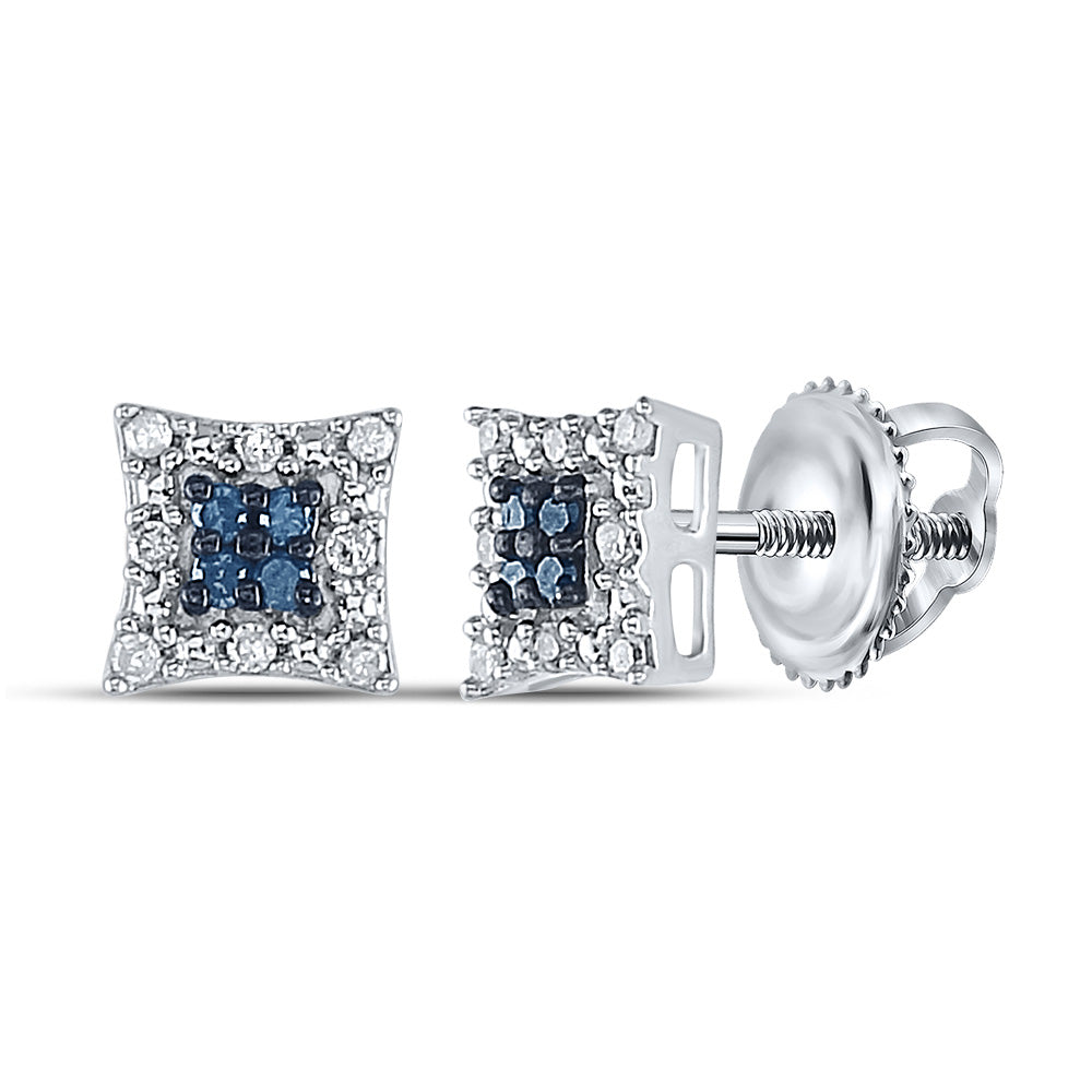 Sterling Silver Womens Round Blue Color Enhanced Diamond Square Earrings 1/10 Cttw