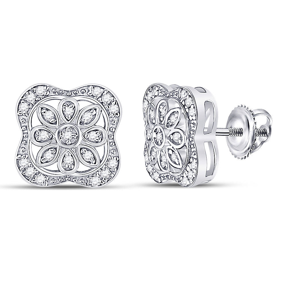 Sterling Silver Womens Round Diamond Flower Fashion Earrings 1/8 Cttw