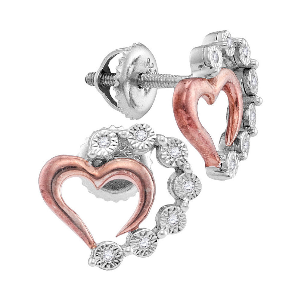 Sterling Silver Womens Round Diamond Heart Earrings 1/20 Cttw