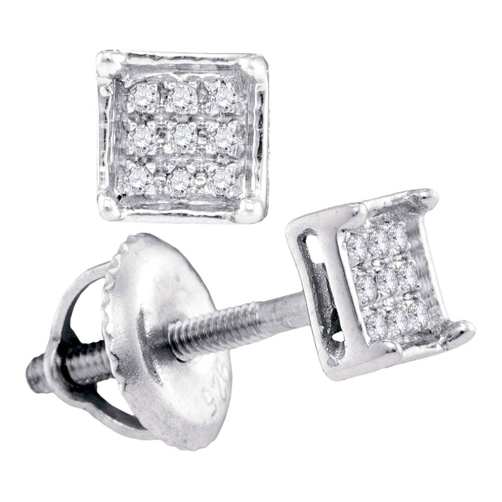 Sterling Silver Womens Round Diamond Square Earrings 1/20 Cttw