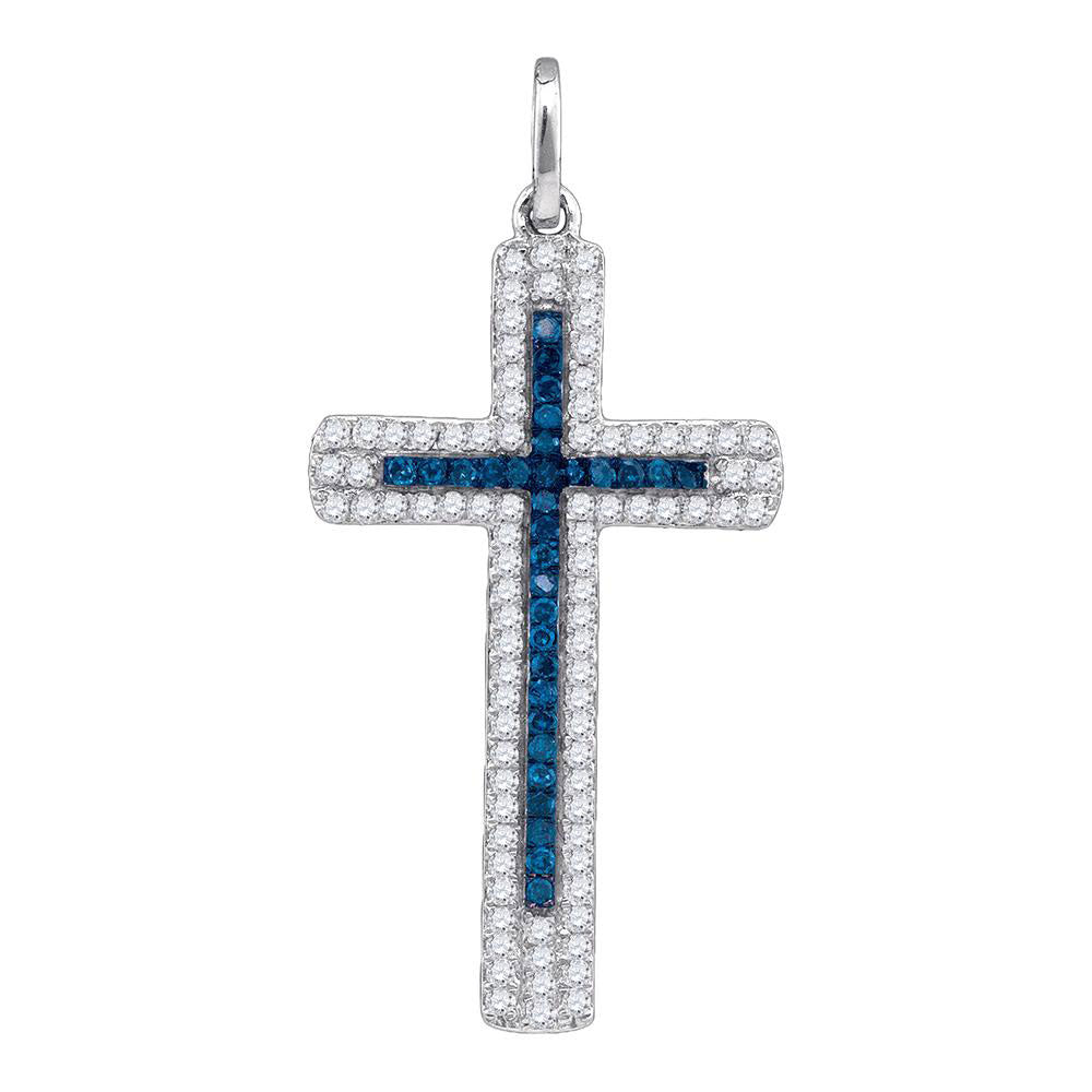 10kt White Gold Womens Round Blue Color Enhanced Diamond Cross Pendant 1/4 Cttw