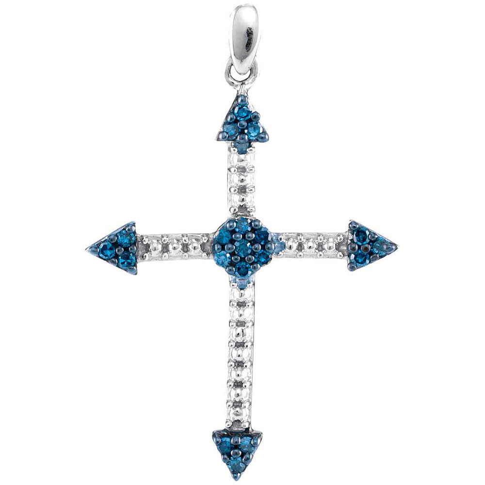 10kt White Gold Womens Round Blue Color Enhanced Diamond Cross Religious Pendant 1/6 Cttw