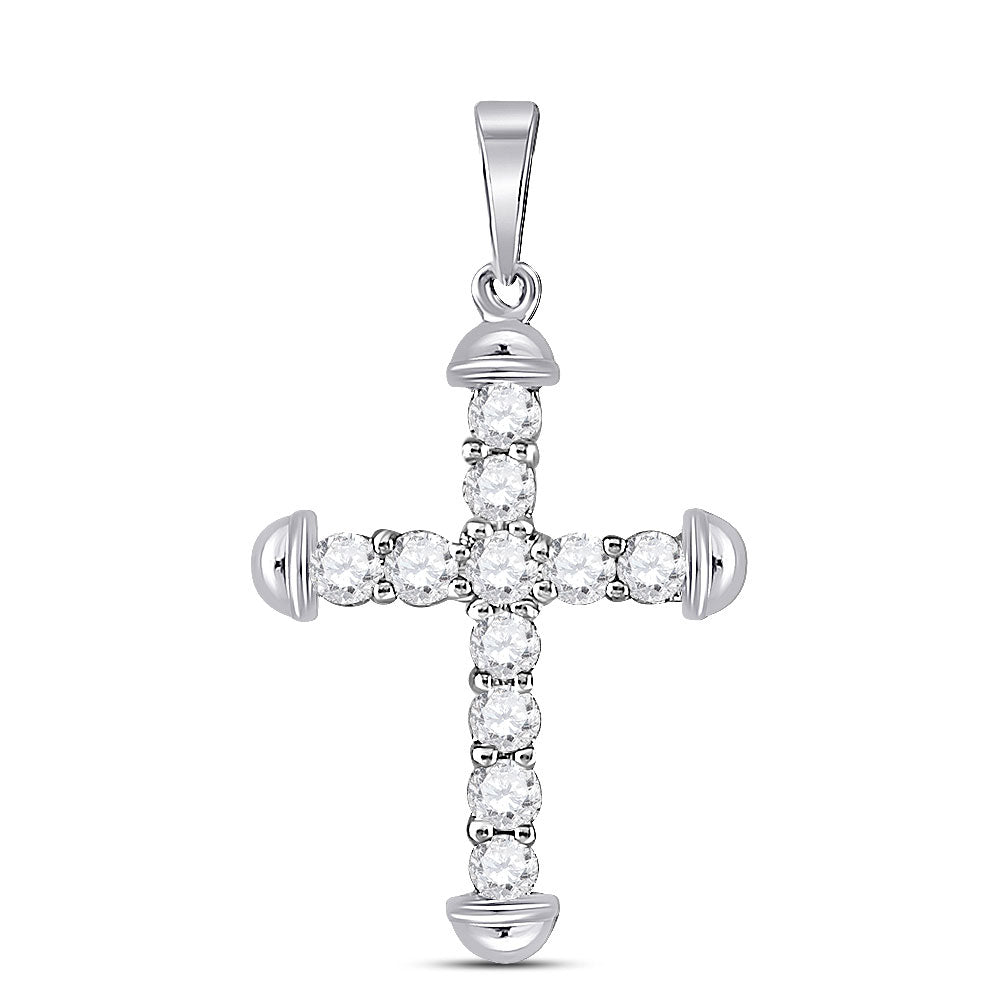 10kt White Gold Womens Round Diamond Cross Pendant 1/3 Cttw