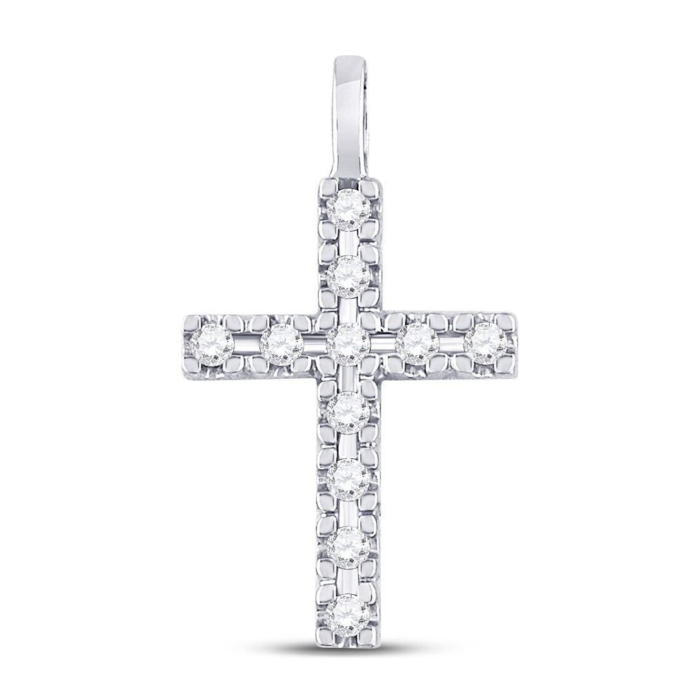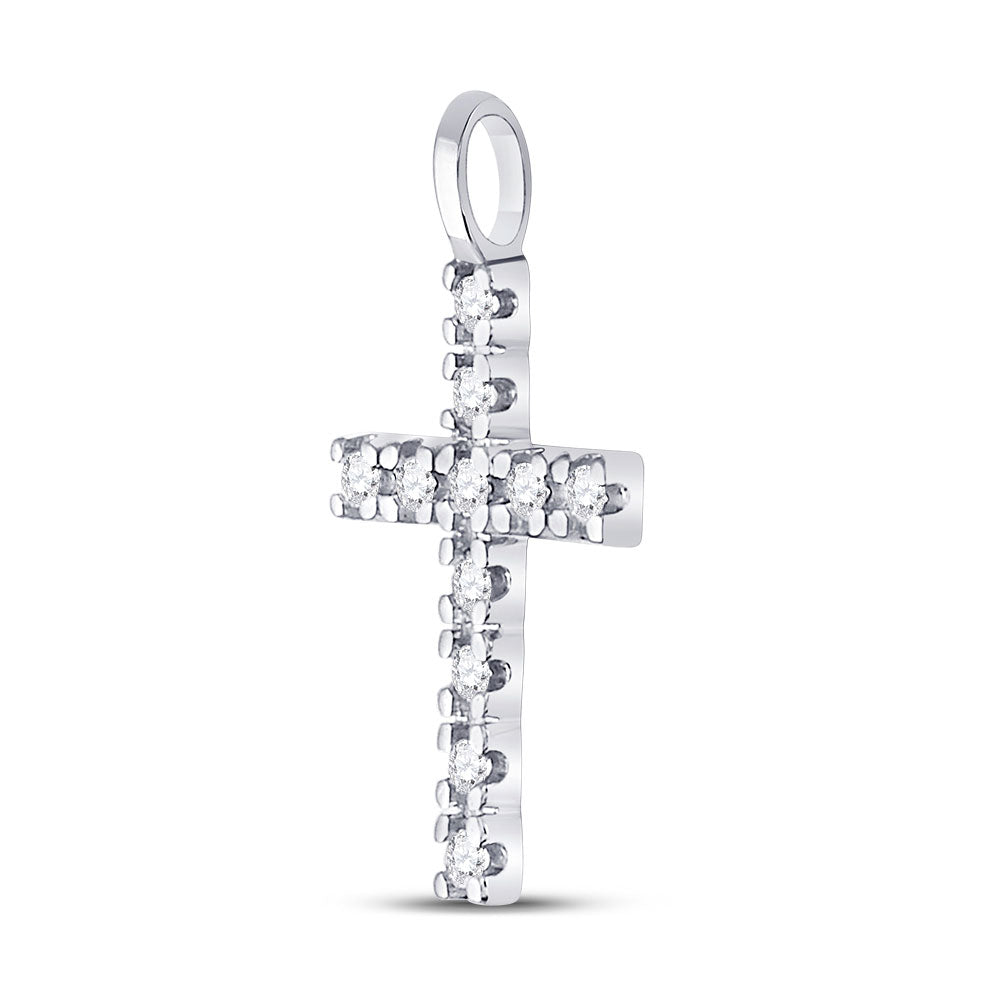 10kt White Gold Womens Round Diamond Cross Pendant 1/4 Cttw