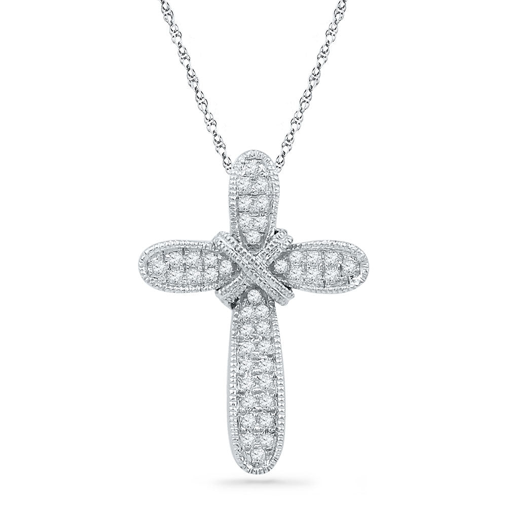 10kt White Gold Womens Round Diamond Cross Pendant 1/6 Cttw