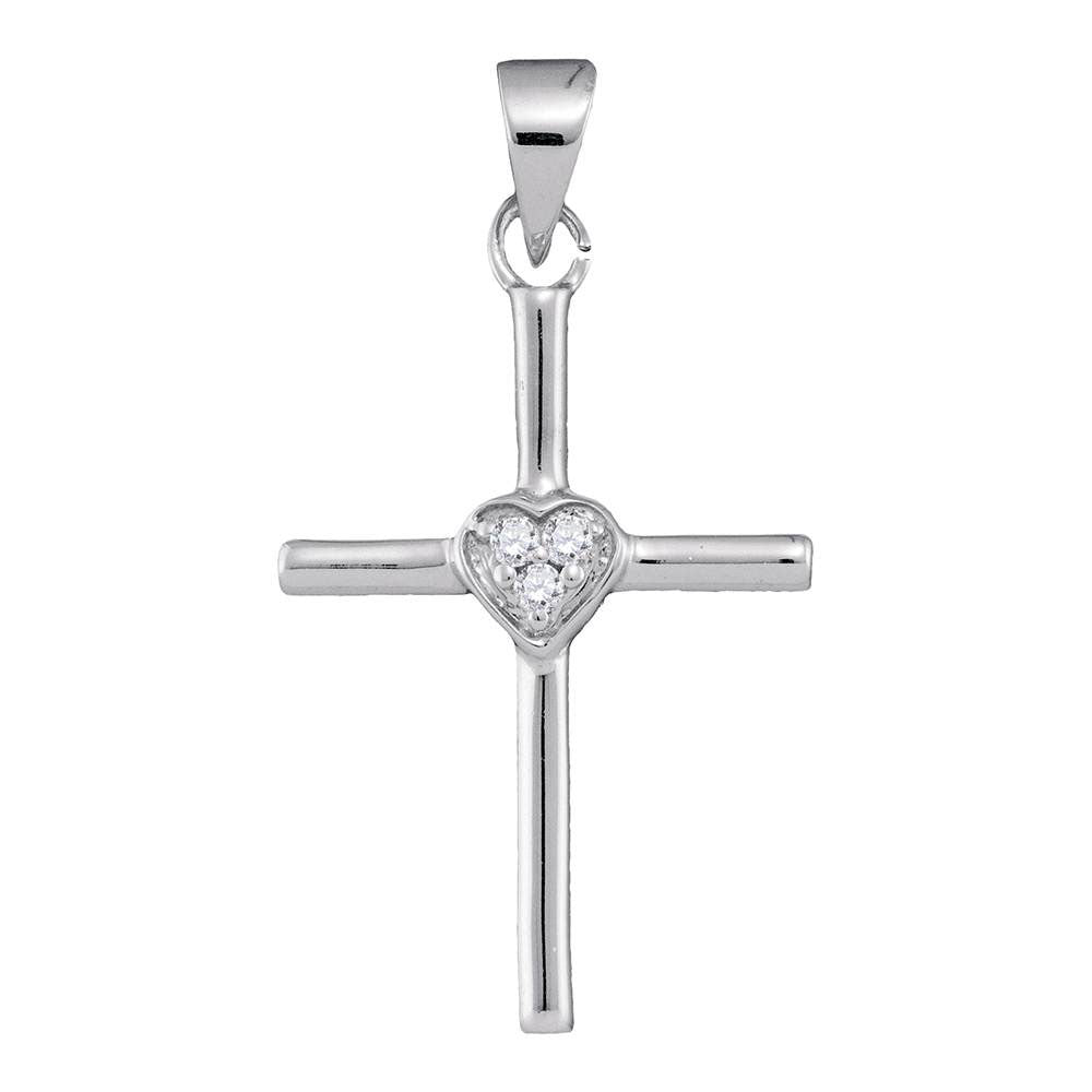 10kt White Gold Womens Round Diamond Small Cross Heart Pendant .03 Cttw