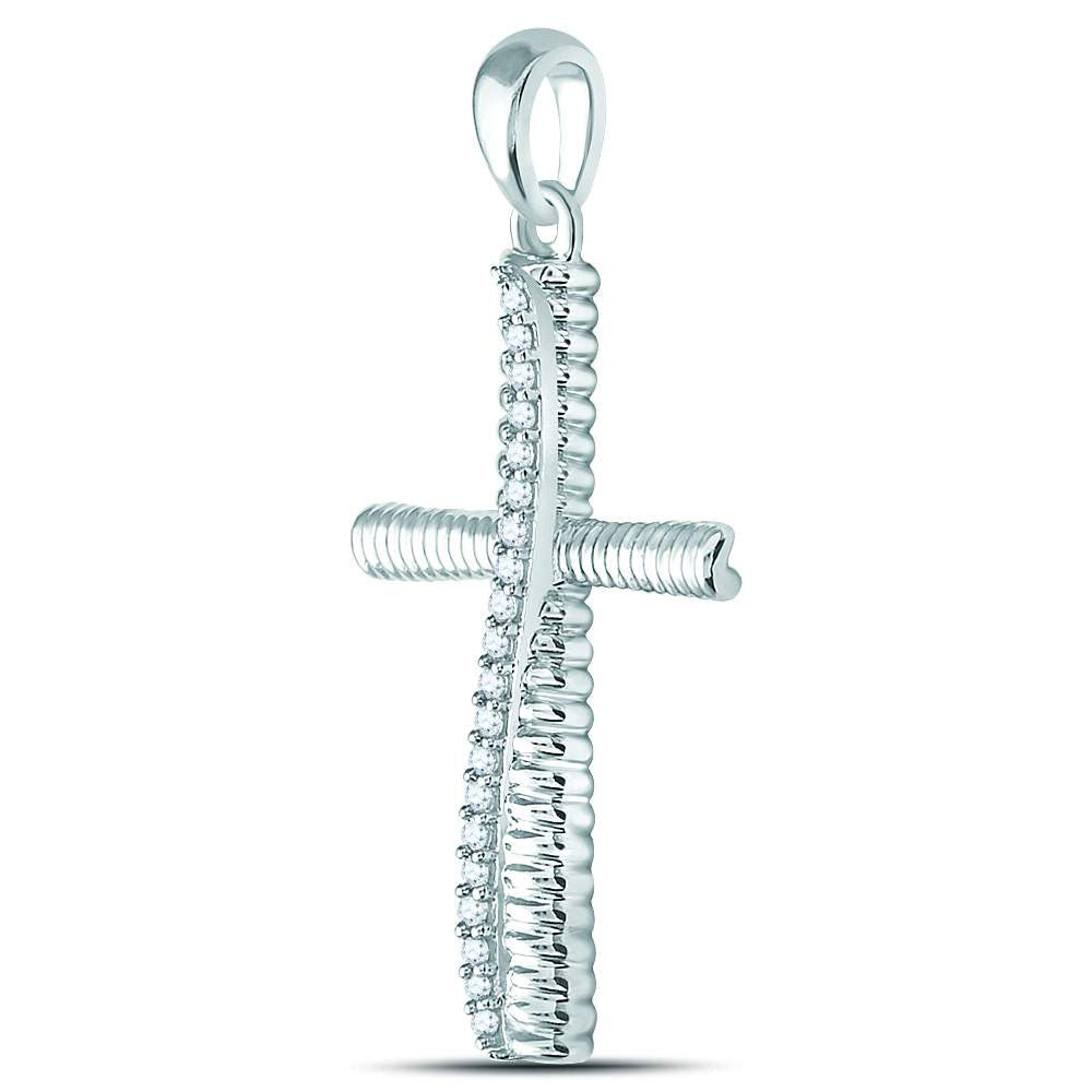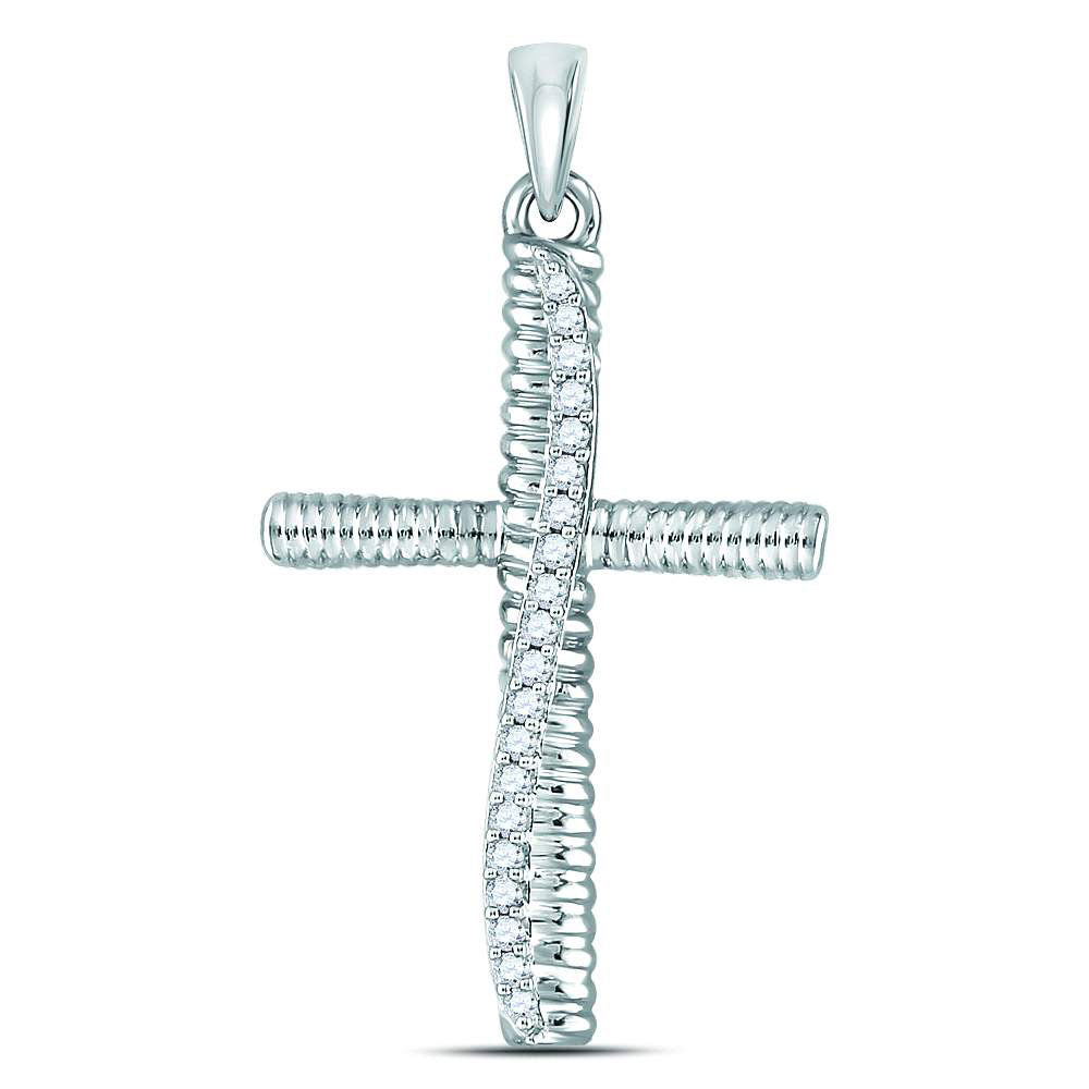 10kt White Gold Womens Round Diamond Textured Cross Pendant 1/6 Cttw