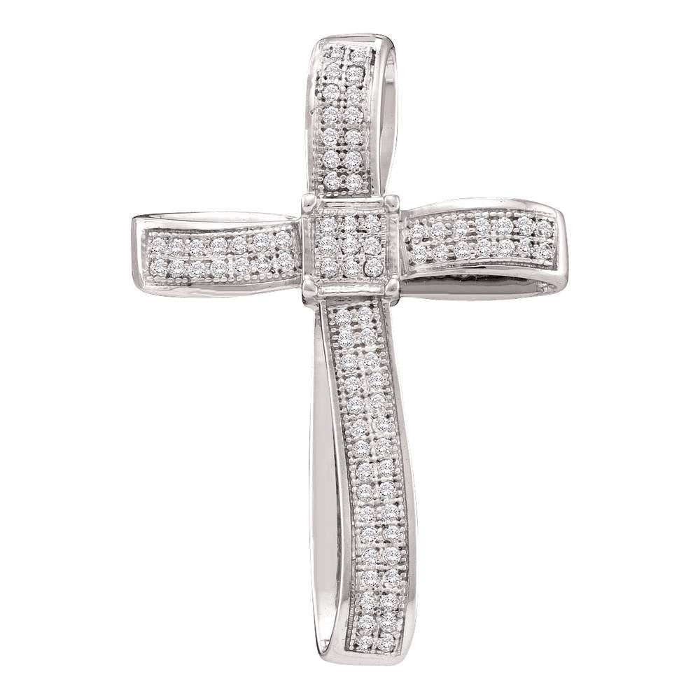 10kt Yellow Gold Womens Round Diamond Asymmetrical Curved Cross Pendant 1/4 Cttw