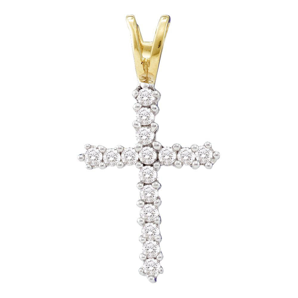 10kt Yellow Gold Womens Round Diamond Cross Pendant 1/4 Cttw