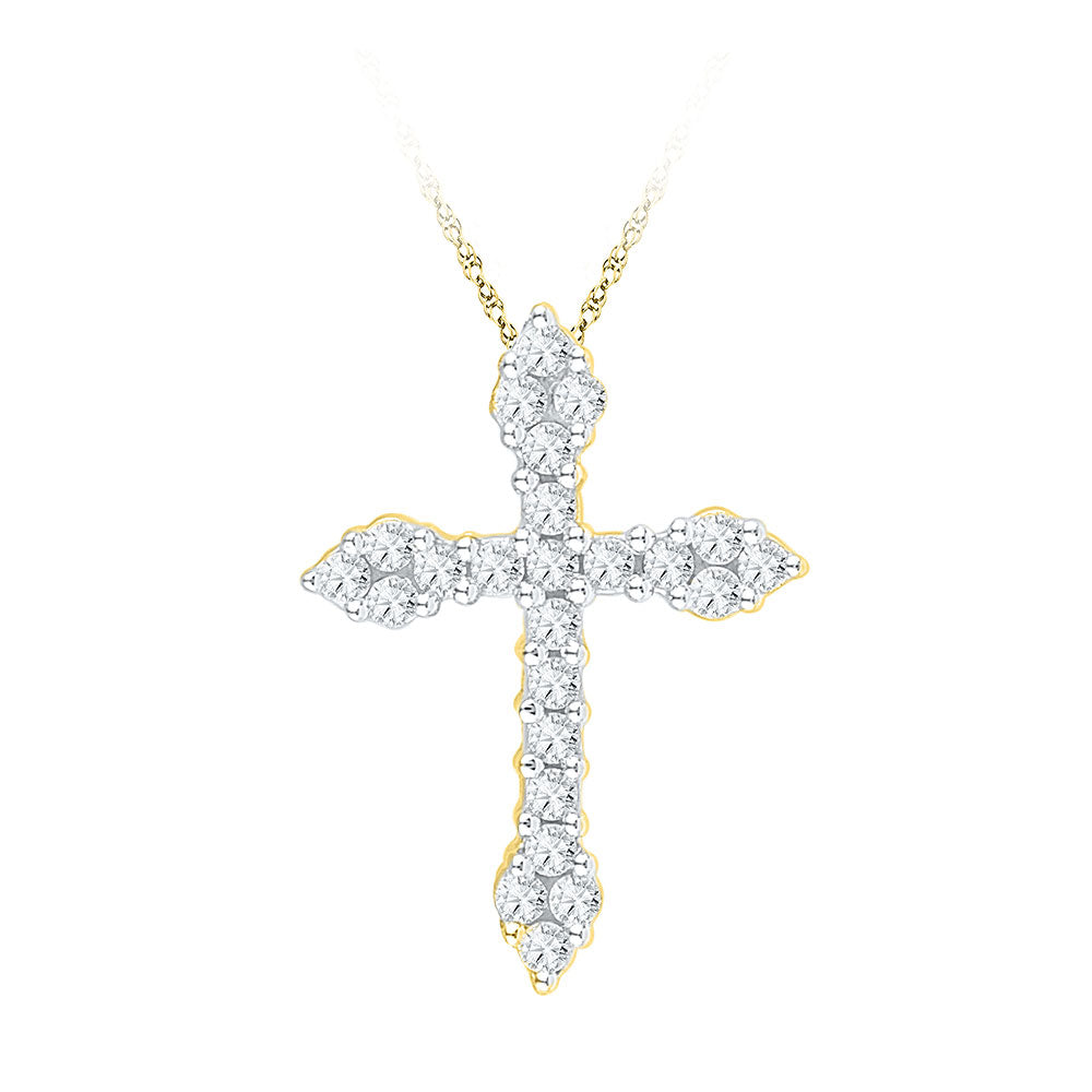 10kt Yellow Gold Womens Round Diamond Cross Religious Pendant 1/4 Cttw