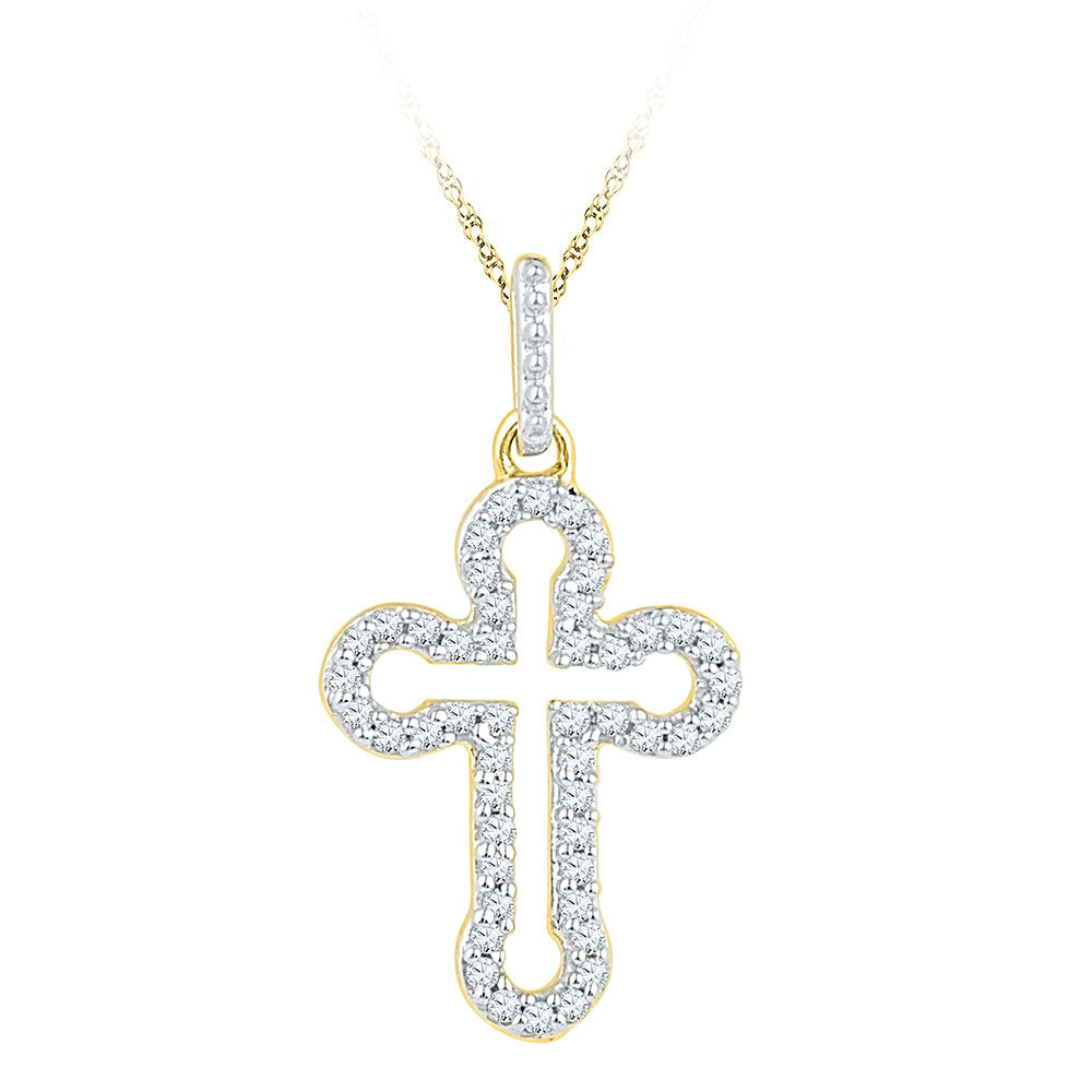 10kt Yellow Gold Womens Round Diamond Cross Religious Pendant 1/6 Cttw