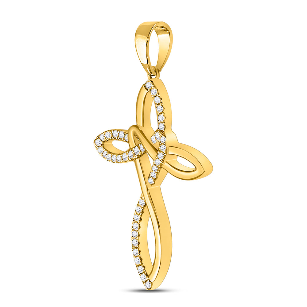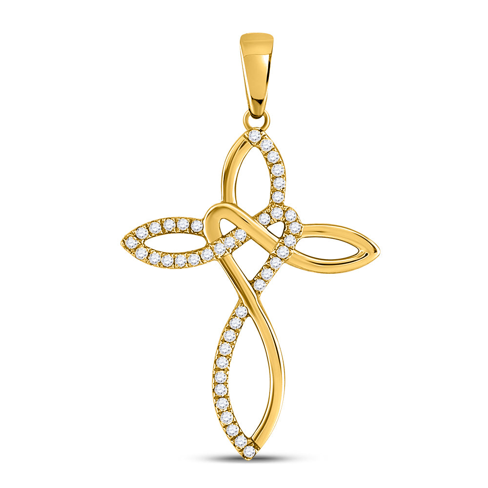 10kt Yellow Gold Womens Round Diamond Woven Cross Pendant 1/5 Cttw