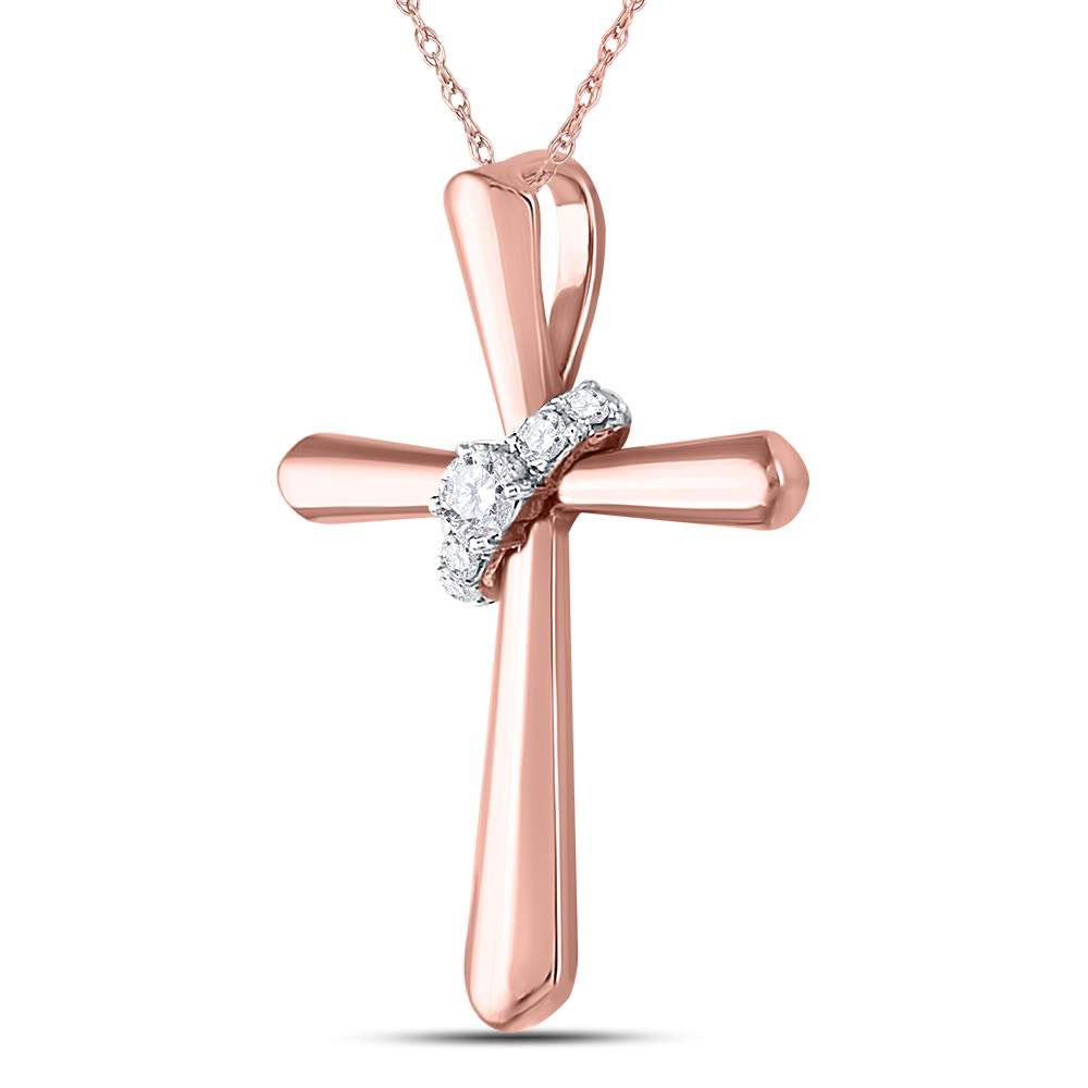 14kt Rose Gold Womens Round Diamond Cross Pendant 1/10 Cttw