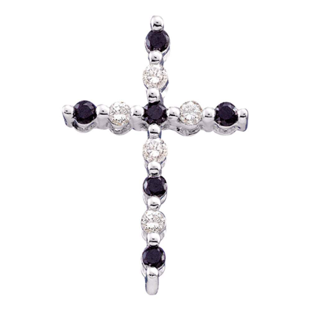 14kt White Gold Womens Round Black Color Enhanced Diamond Alternating Cross Pendant 1/8 Cttw