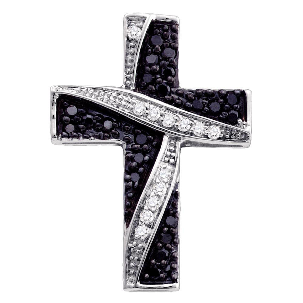 14kt White Gold Womens Round Black Color Enhanced Diamond Cross Pendant 1/4 Cttw