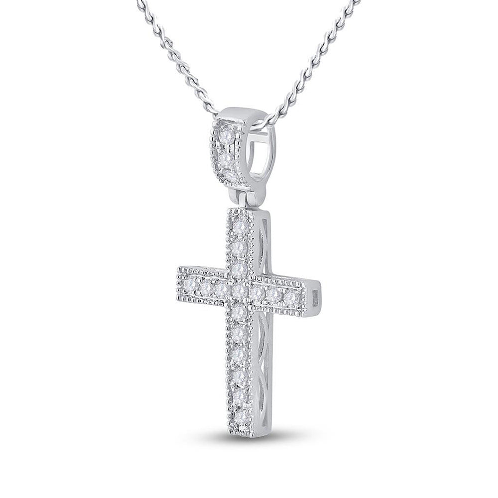 14kt White Gold Womens Round Diamond Milgrain Cross Pendant 1/5 Cttw