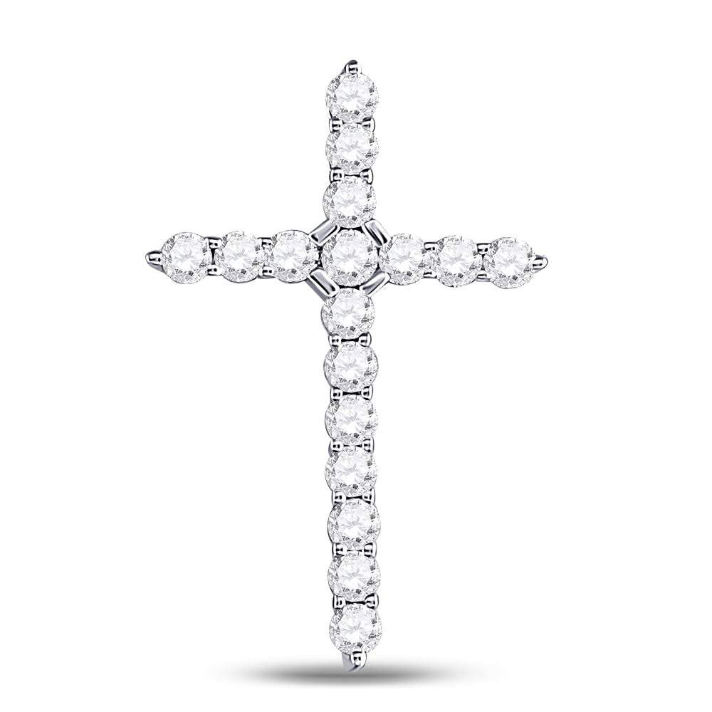 14kt White Gold Womens Round Diamond Roman Cross Pendant 1/2 Cttw