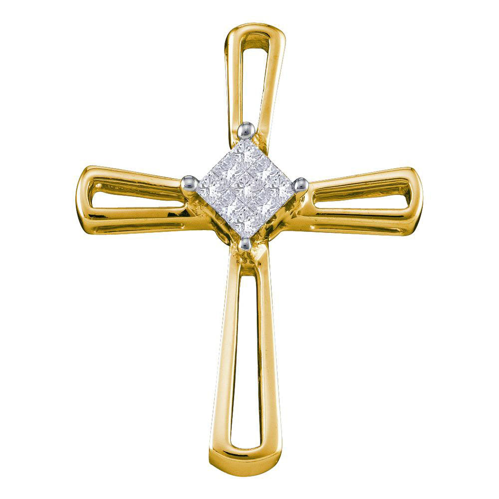 14kt Yellow Gold Womens Princess Diamond Cross Pendant 1/10 Cttw
