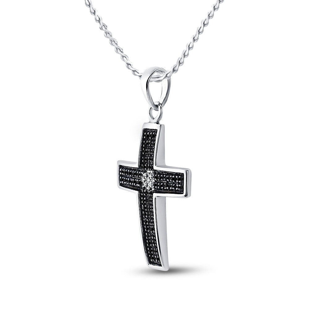 Sterling Silver Womens Round Black Color Enhanced Diamond Cross Pendant 1/6 Cttw