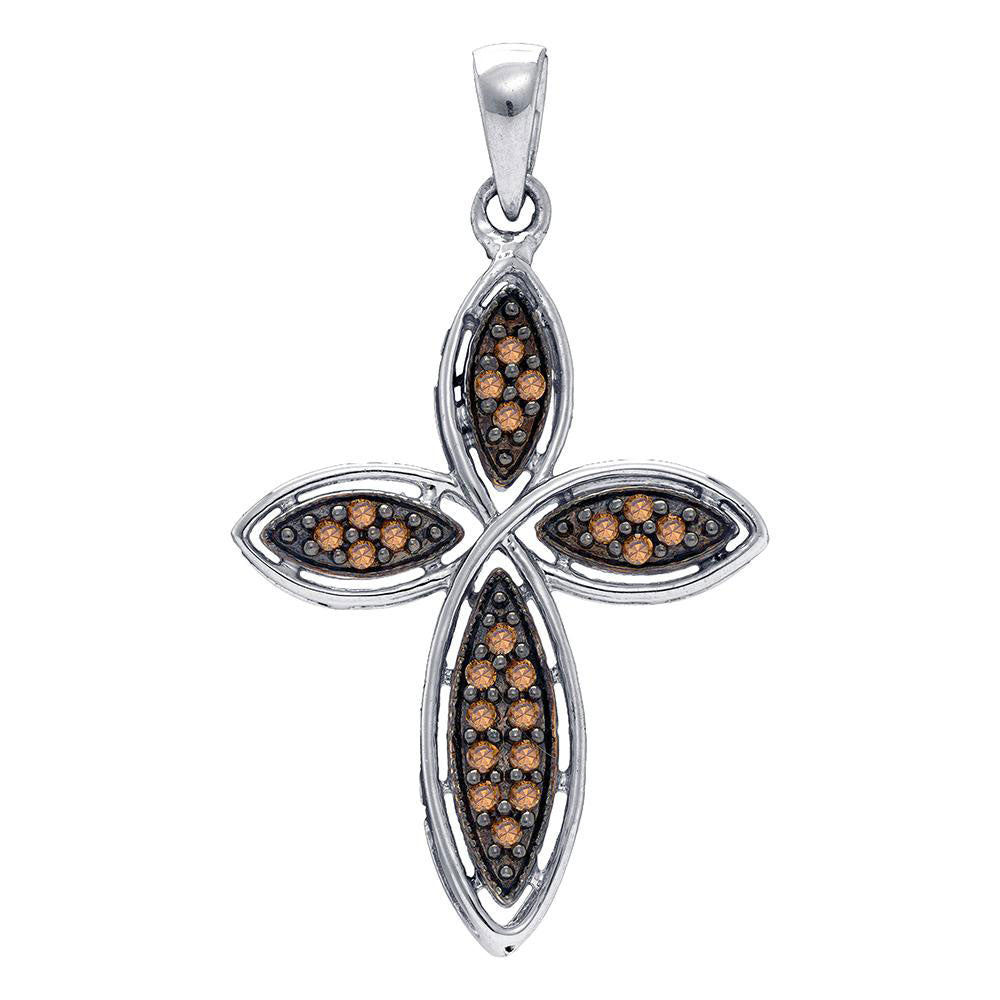 Sterling Silver Womens Round Brown Diamond Cross Pendant 1/4 Cttw