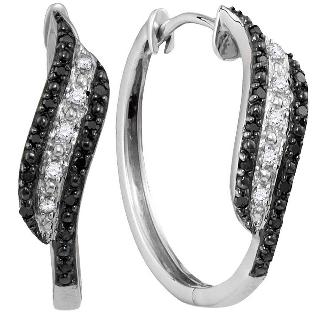 10kt White Gold Womens Round Black Color Enhanced Diamond Hoop Earrings 1/5 Cttw