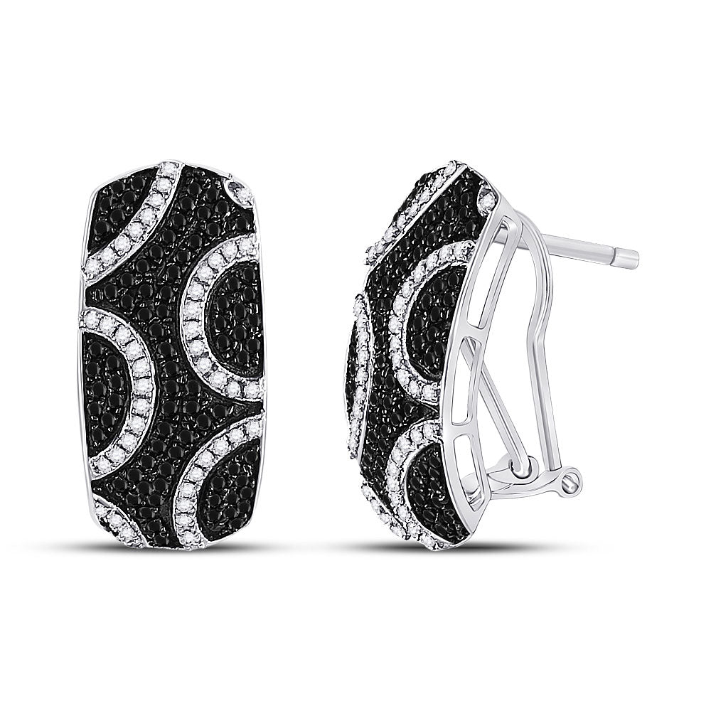 10kt White Gold Womens Round Black Color Enhanced Diamond Hoop Earrings 3/4 Cttw
