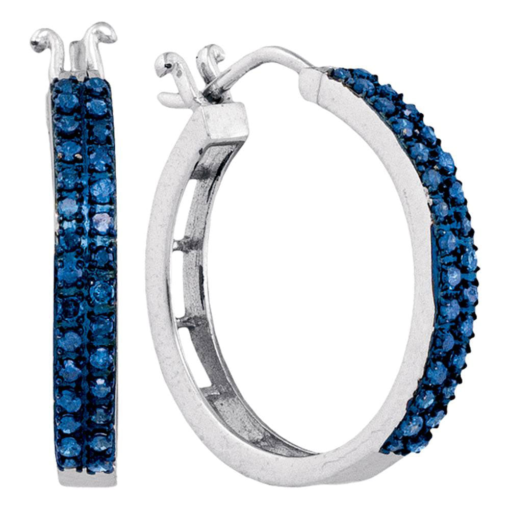 10kt White Gold Womens Round Blue Color Enhanced Diamond Double Row Hoop Earrings 1/2 Cttw