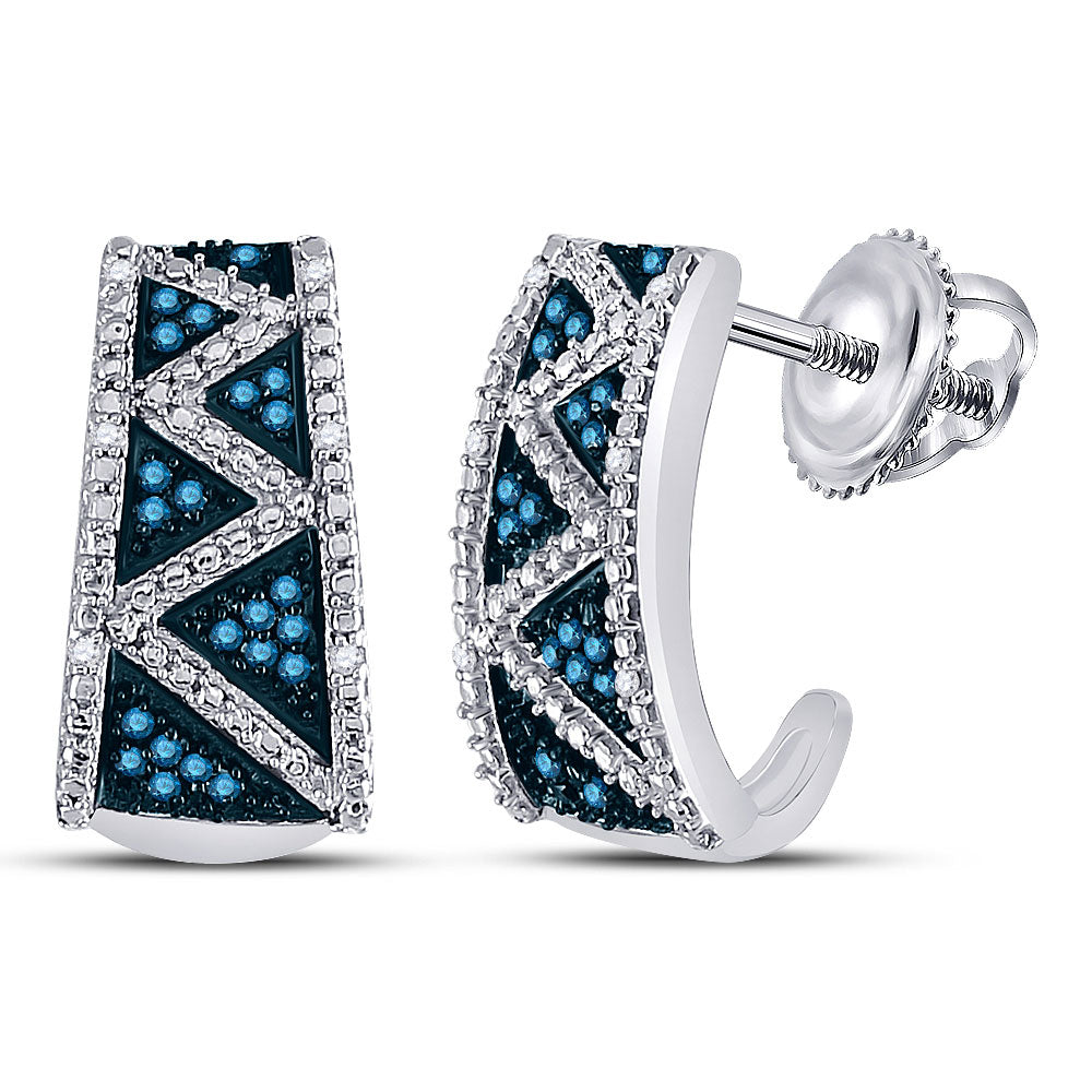 10kt White Gold Womens Round Blue Color Enhanced Diamond Half J Hoop Earrings 1/10 Cttw