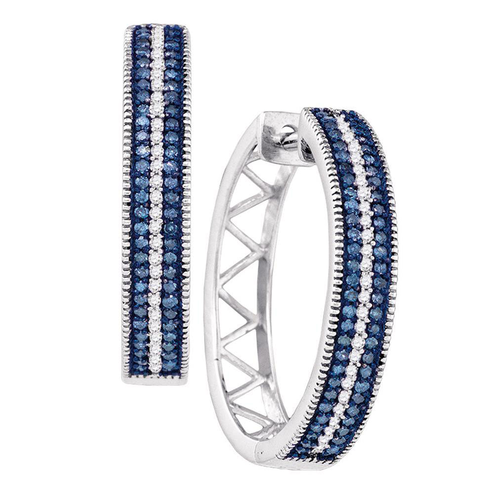 10kt White Gold Womens Round Blue Color Enhanced Diamond Hoop Earrings 1/2 Cttw