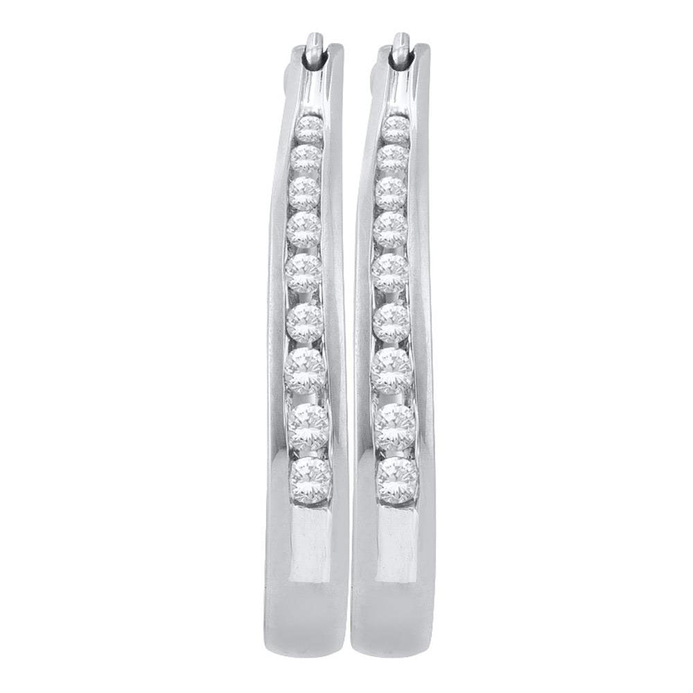10kt White Gold Womens Round Channel-set Diamond Hoop Earrings 1/4 Cttw