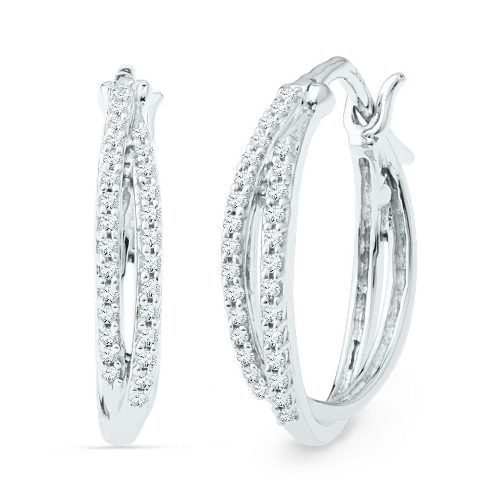 10kt White Gold Womens Round Diamond Double Row Hoop Earrings 1/4 Cttw