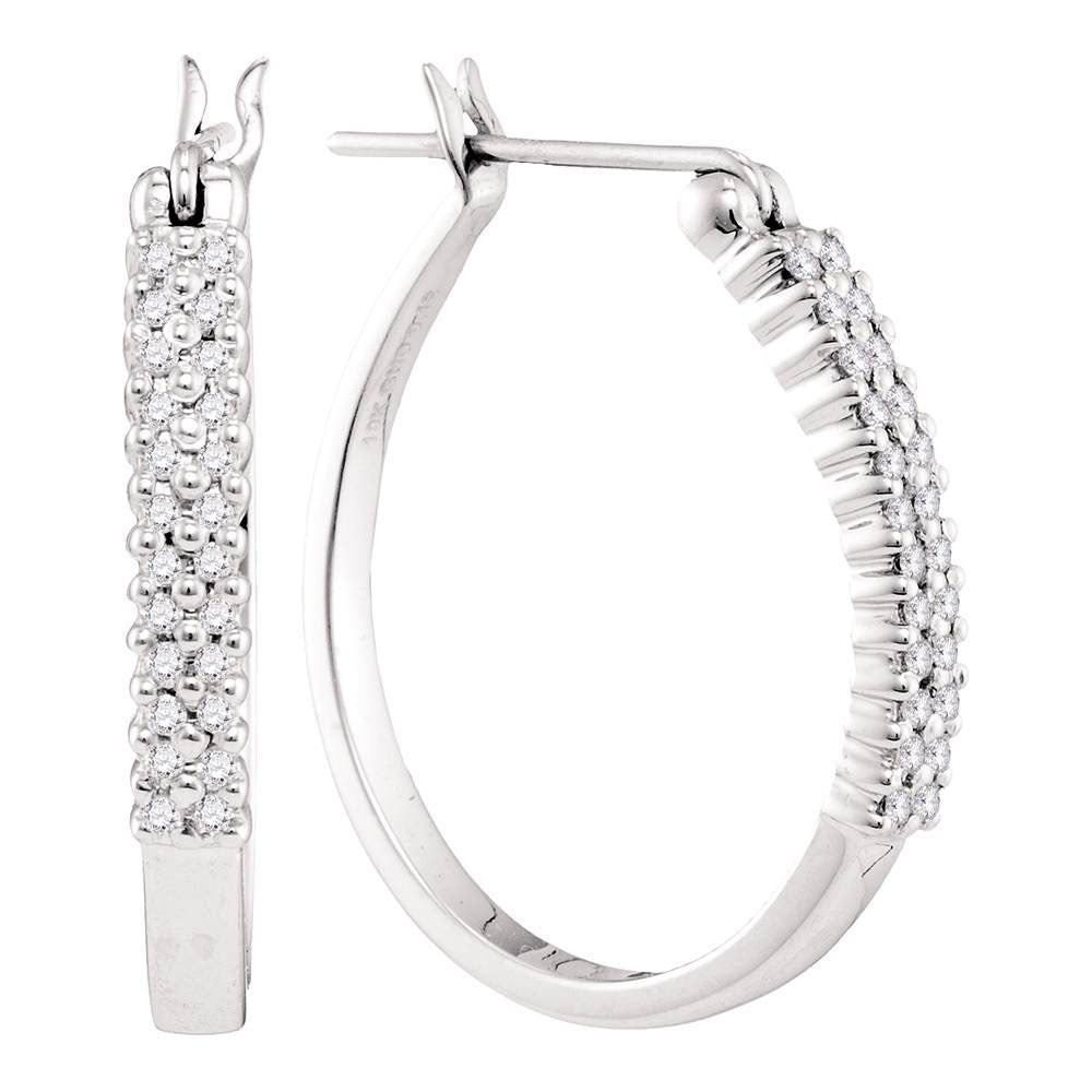 10kt White Gold Womens Round Diamond Double Row Hoop Earrings 1/4 Cttw