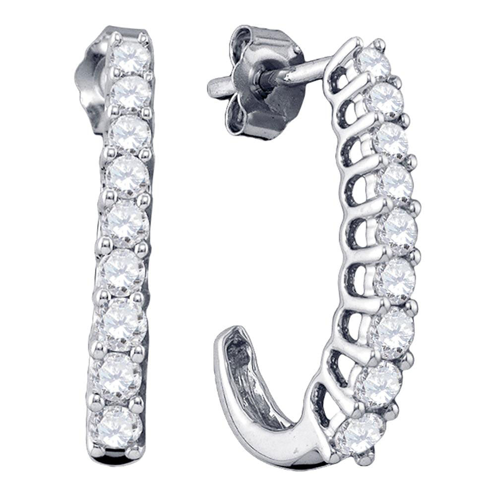 10kt White Gold Womens Round Diamond Half J Hoop Earrings 1 Cttw