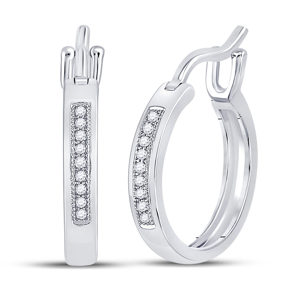 10kt White Gold Womens Round Diamond Hoop Earrings 1/20 Cttw