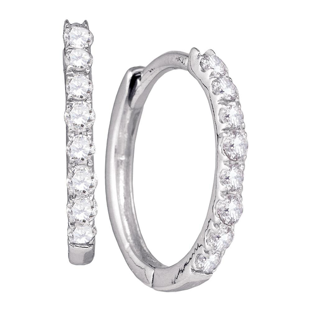 10kt White Gold Womens Round Diamond Hoop Earrings 1/3 Cttw