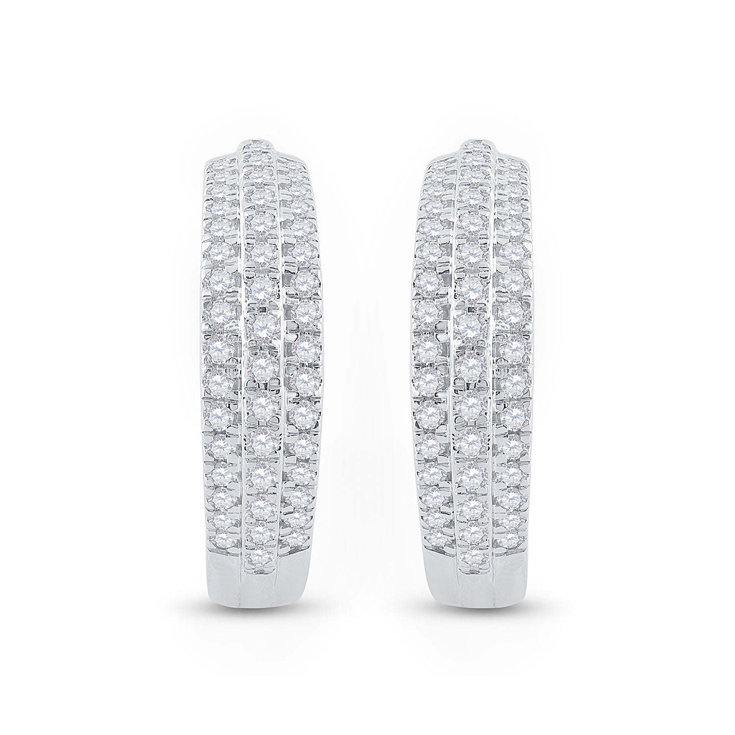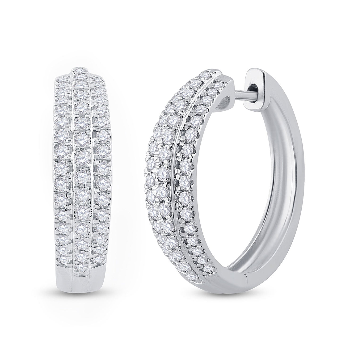 10kt White Gold Womens Round Diamond Hoop Earrings 1 Cttw