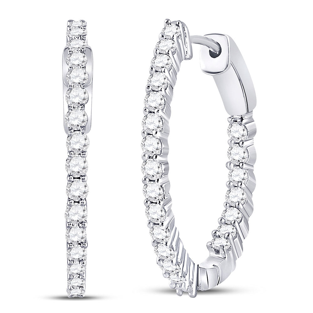 10kt White Gold Womens Round Diamond Inside Outside Hoop Earrings 2 Cttw