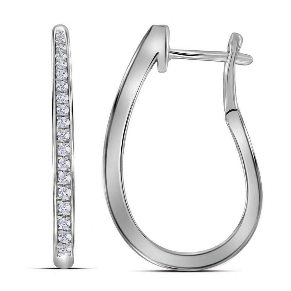 10kt White Gold Womens Round Diamond Inside-Outside Oblong Hoop Earrings 1/2 Cttw