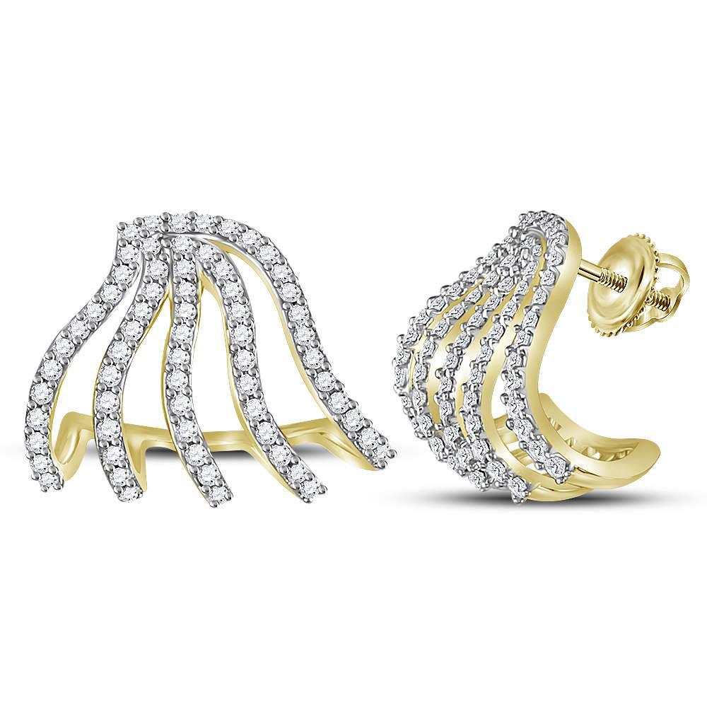 10kt Yellow Gold Womens Round Diamond Lobe Half Hoop Earrings 5/8 Cttw