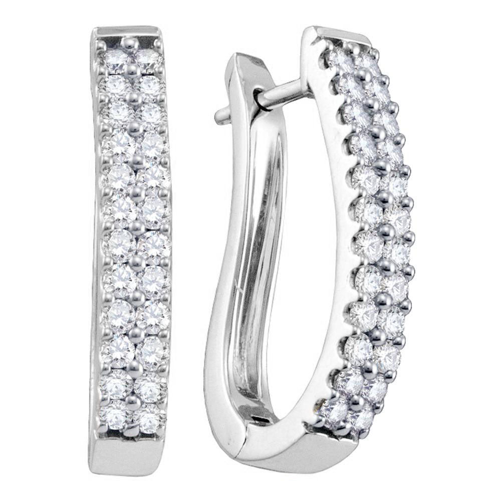 14k White Gold Round Pave-set Diamond 2-row Womens Oblong Hoop Earrings 1 Cttw