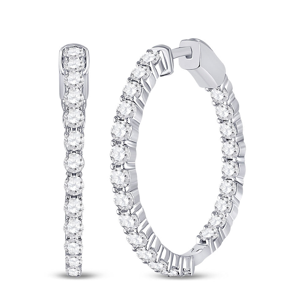 14kt White Gold Womens Round Diamond Inside-Outside Hoop Earrings 3 Cttw