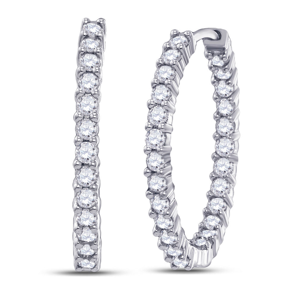14kt White Gold Womens Round Diamond Inside Outside Hoop Earrings 3 Cttw