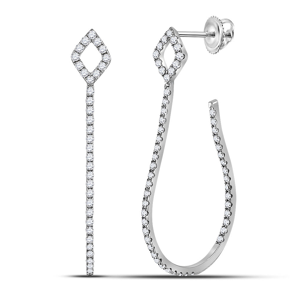 14kt White Gold Womens Round Diamond Modern Hoop Earrings 3/4 Cttw