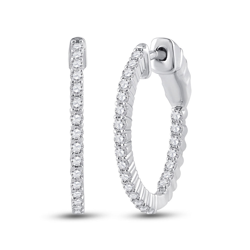 14kt White Gold Womens Round Diamond Single Row Hoop Earrings 1/2 Cttw