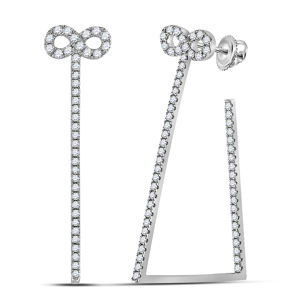 14kt White Gold Womens Round Diamond Triangular Hoop Earrings 3/4 Cttw