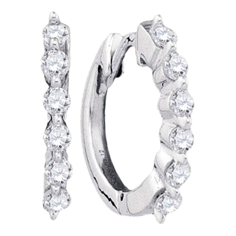 14kt White Gold Womens Round Pave-set Diamond Hoop Earrings 1/4 Cttw