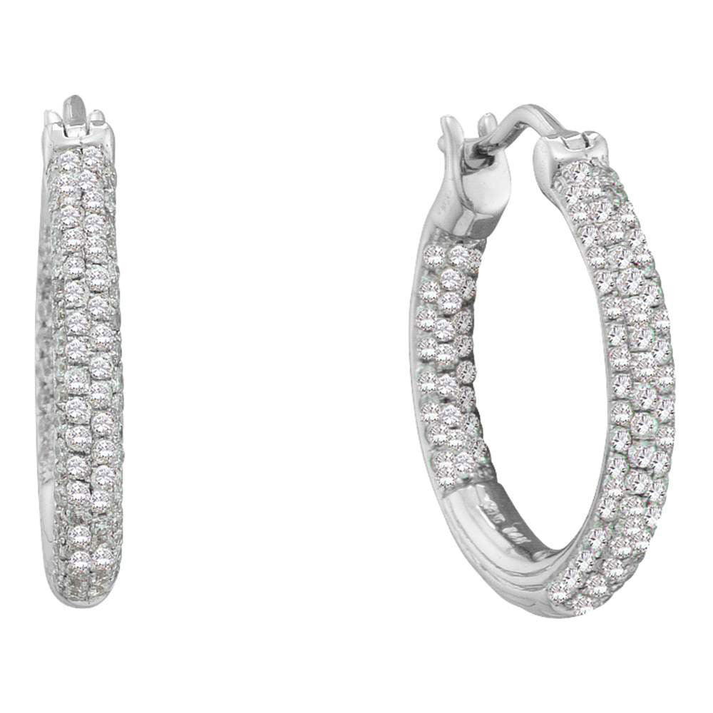 14kt White Gold Womens Round Pave-set Diamond Inside Outside Hoop Earrings 1/2 Cttw